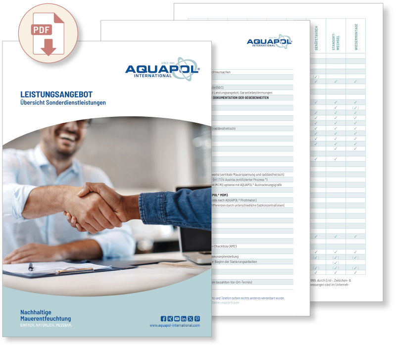 Die aktuelle AQUAPOL® Leistungsübersicht. Fragen Sie bei uns an und wir senden Ihnen diese gerne zu.